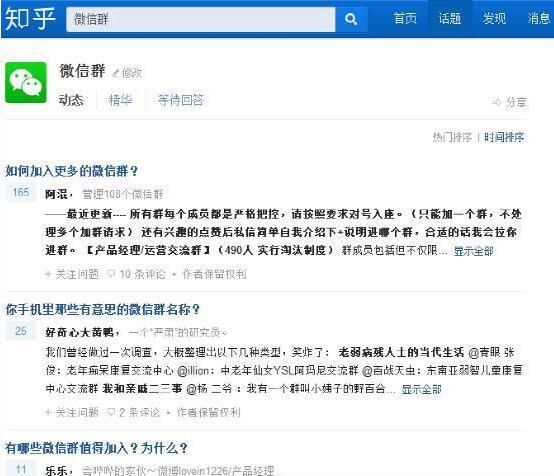 另外,如果是利用知乎的话,可以直接在搜索栏中输入“微信群”、“QQ群”这样的关键词进行检索。