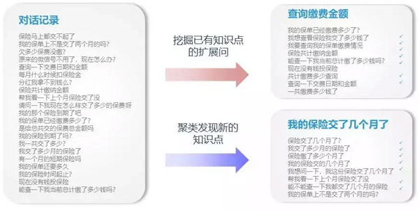 知识库建设初期,可将已有历史对话记录中的用户问题上传语义理解引擎,引擎将问法与标准知识进行聚类、匹配。知识加工人员只需将有效拓展问勾选添加到已有知识点,或将发现的新问题添加为新知识点,来快速进行知识库建设。