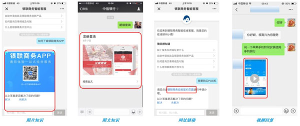 用户在不同渠道上进行业务咨询,智能客服有不同的答案展现形式。如用户在移动端咨询,可以提供文字、图片、图文、视频等答案形式。如果是在web端,可以提供链接,方便用户浏览操作。