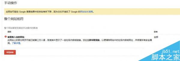 很多人会问,影响网站的不利因素多了去了,为什么重点说这几个? 因为Daniel在接优化的单子的时候,发现出现此类问题的人特别多,并且谷歌响应的速度特别快。举个例子:一个做仿牌的朋友做黑链(利用DIV+CSS 隐藏锚文本),但是我观察了许久,该网站并没有被降权。相反,当仿牌的手段从黑链转变成黑页(在被黑的SHELL里,大量导入HTML页面,生成大量的反 向链接页面)时,就如第二条所说的,谷歌站长就会立刻检测的到(时间不会超过7天),并且加入人工干预(Manual Action), 如图所示: