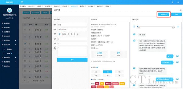 客户资料批量导出;A、B类录音批量下载;可以自定义设置操作、状态、分类、通话时长、电话、姓名、标签、分值、转人工分机号等20多个列表标签选择是否显示;不完整、不符合客户资料也可以一键删除。新的【客户CRM管理】,客户意向客户资料一目了然,有效的提高了客户成交率。