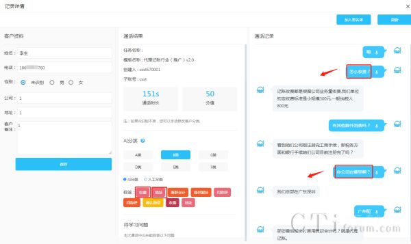小鑫机器人新增的【动态标签】功能,可将与客户交互对话过程中获取的有效客户信息(具体如:收费、地址、兼职会计等)作为智能标签直接输出记录,实现精准的客户画像。