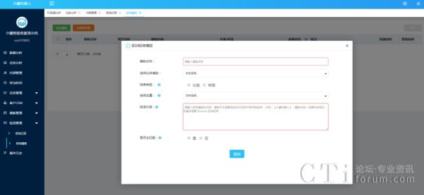 新增了【短信管理】模块,可对接设置第三方短信系统平台,实现挂机短信功能。在AI系统管理后台还自行设置短信模板,查看相关短信记录。