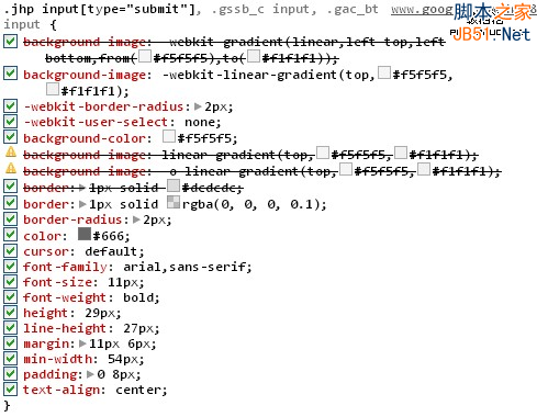 GOOGLE搜索这个按钮没有使用滤镜,IE浏览器就没有做渐变处理,大家都知道GOOGLE是非常在意性能的公司,有些时候为了极致的性能,稍微牺牲一下视觉体验也是可以接受的。