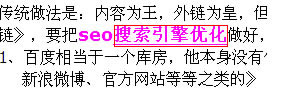 由图可知,这篇文章主要是介绍seo搜索引擎优化的文章,作者在seo和搜素引擎优化这两个词上分别加入了锚文本,从而提升这两个词的权重,同理,我们在优化自己网站过程中,比如需要优化的词是蓝田玉手镯价格,当然可以在任何一篇文章中只要第一次出现这个词的时候,我们也可以为其加上站内锚文本,注意文本指向一定要指向对应的与之相关的介绍蓝田玉价格的页面或者一组专题页面,不要所有的词都指向网站首页这样是十分不利于长尾词优化的,相关性很重要,把握大这个原则即可。