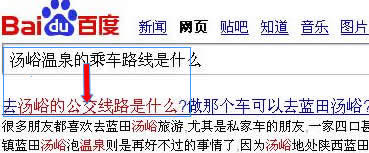 笔者的一个网站是关于温泉的旅游网,经分析市内游客经常会因为路线问题而去百度进行搜索,笔者针对这一问题,汤峪温泉的乘车路线是什么为主题进行创作文章,在标题中部署相关的长尾词,由图可知用户在搜索此类长尾词或者相近相似的词的时候百度都会进行近义词匹配,从而在第一时间为客户提供有价值的信息,同时笔者这个内页的排名也是自然而然的被推荐到了靠前的位置。
