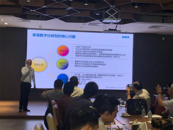 ▲销售易行业专家邱强详细介绍了家装行业上下游完整解决方案,协助传统家居家装企业从市场营销,销售过程管理,绩效管理,售后服务的完整产业链的转型。