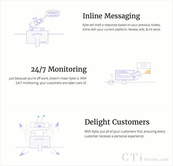 客户支持远比简单聊天的客服工作复杂,和chatbots相比,Kylie.ai将工作能力提升到了另外一个层级: