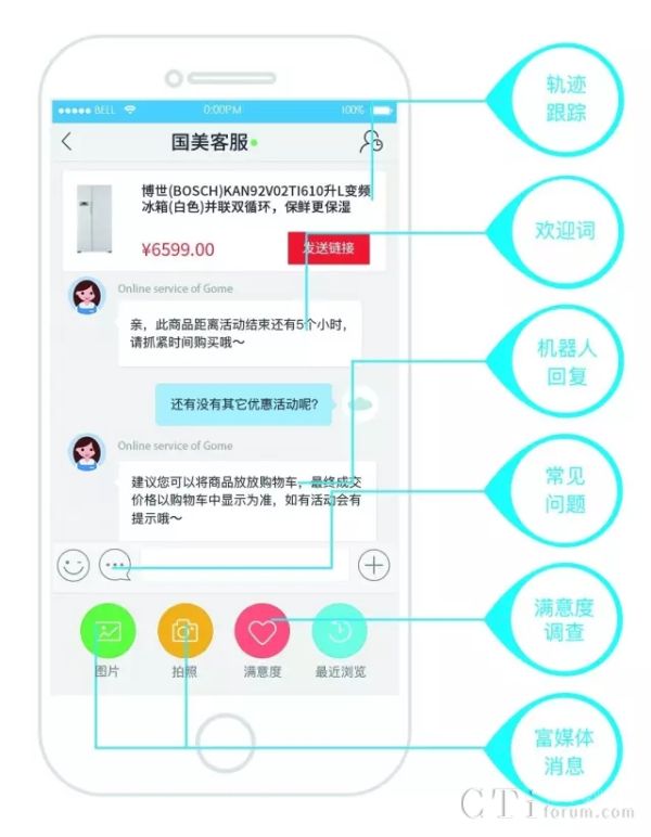 支持富媒体消息,表现能力强。比如消费者可以发送位置,图片,订单消息等类型消息。这种类型的富媒体消息,往往很难通过电话描述。