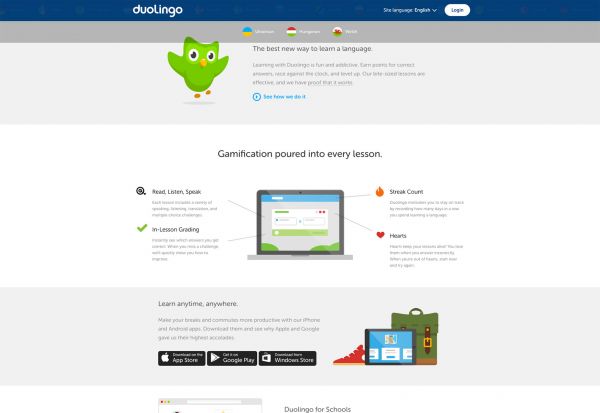 多邻国的登录页面底部,放置了一句号召语,呼吁目标用户赶紧体验产品