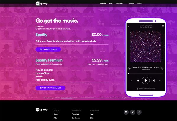 Spotify提供了30天的免费订阅服务,来吸引用户。