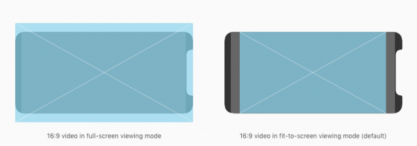 设计师要做的-注意视频的展示方式说到这里你一定会吐槽这个大刘海,毕竟遮住了一部分的影片内容,但你也可以选择将他们缩小显示一下,也是个好主意,刘海部分就不要放什么东西了。以下是苹果的建议,咱们看看就好。