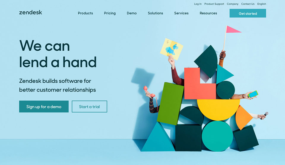 Zendesk用形象的概念图来辅助传达产品的价值主张——We can lend a hand。