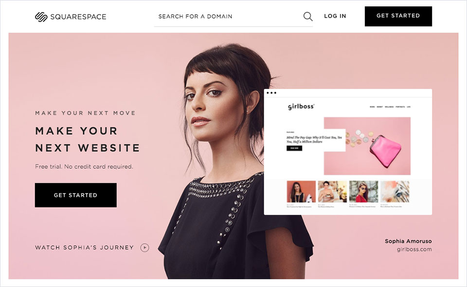 自助建站应用Squarespace用高清的客户肖像图配合产品界面,来表现他们的应用可以为不同人群定制专属网站的理念: