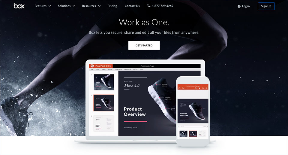 云存储应用Box用产品界面和照片混搭的形式来表现“Work as One”的产品理念: