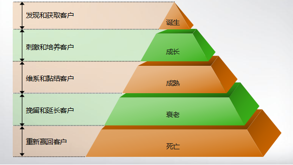将“客户生命周期”衍生到互联网产品领域,就变成了“用户生命周期”。但与客户生命周期的金字塔结构不一样,用户生命周期更像一个漏斗,每个阶段没有运营,用户就可能直接走向流失,结束生命。