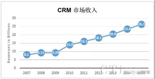 Gartner市场分析指出,CRM软件市场收入从2014年的232亿美元,上升至2015年的263亿美元,年增长率为12.3%。该分析公司预测,到2017年,全球CRM软件市场份额有望达到365亿美元。