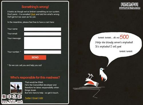 可能一个用户在遇到一个404页面的时候会有某种非常强烈的情绪。他们可能会很焦虑、担心,或者他们会被气疯了……让用户发泄是个不错的主意,因为你不可能成为他们的出气筒,所以一个联系表单可能就会凑效。当然,这不仅仅对他们有好处,对你也有好处,因为你可以找到问题然后去修正它或者预防它再次发生。