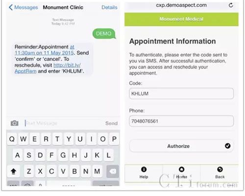 (推送包含URL和密码的短消息,方便患者确认或修改预约)