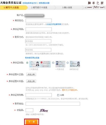 请正确选择您身份证件所在的地区,正确选择后才能顺利的完成您的支付宝实名认证;(此流程以中国大陆用户为例)
