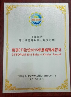 此次,CTI论坛在“编辑推荐奖”的评选规则上,采用了“自荐/推荐参选+大众评审网络投票+专家调研”的方式,严格推选出2015年度ICT领域(呼叫中心、企业通信、增值电信等)的优秀技术产品、解决方案、从业人员,以此促进ICT领域的信息交流,为业界提供了解行业发展的平台。飞翱凭借优秀的创新能力、专注的服务态度获得此项荣誉也是众望所归。