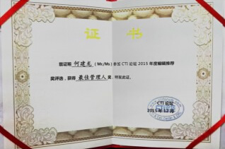 上图:何建龙先生荣获2015年度“编辑推荐奖”(最佳管理人奖)