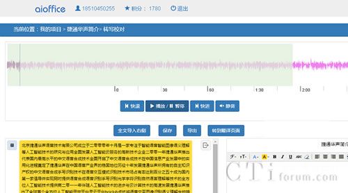 语音识别在Aioffice中并不是转写简单的、时间短的语音,而是集采访长录音转写、会议记录长录音转写、课堂长录音转写、电话长录音转写等多种技能于一身,帮助企业及个人解决在工作中遇到的各种长录音转写问题。