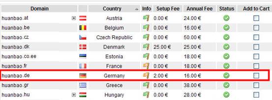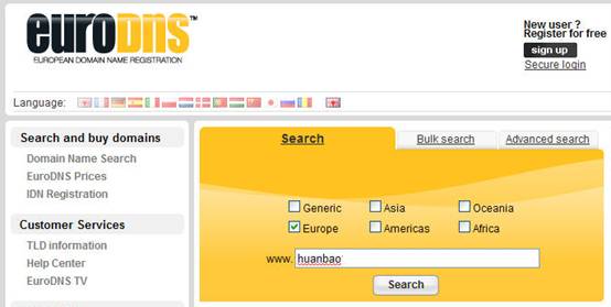 下面以小编最近注册的huanbao.de为例,介绍一下如何在EuroDns注册域名吧: