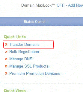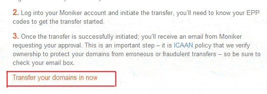 3、新页面中,下拉页面,找到页面中部的“Transfer your Domain in now”链接。