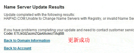 7、新页面中即可看到更新 Mydomain.com 域名的 DNS服务器成功。