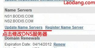 4、新页面的中部,找到 Name Servers 区域,然后点击“Update Name Server”链接。