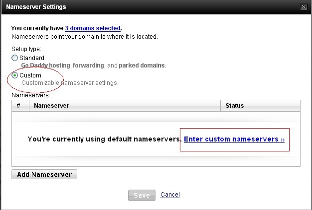 5:如图点击Save就OK啦。如果想恢复godaddy的默认DNS,点击Standard,然后点击Save就可以了。