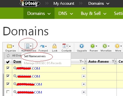2:如图勾选需要的域名,点击Nameservers选项的Set Nameservers。