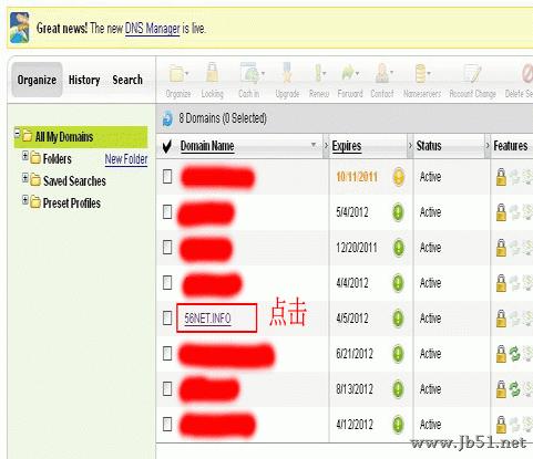 5、然后会进入域名管理界面,如图5: