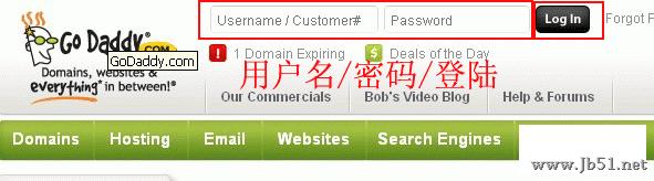1、先开的Godaddy.com,然后在网页顶部进行登录。如图1: