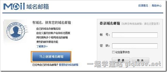 1.访问QQ域名邮箱首页(domain.mail.qq.com),点击【马上创建域名邮箱】