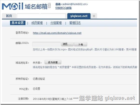 注:如果QQ号就是你创建域名邮箱时登录的那个,那默认绑定的就是管理员帐号,如果不是,那就会发送邮件到你填写的QQ,邀请他确认开通域名邮箱。