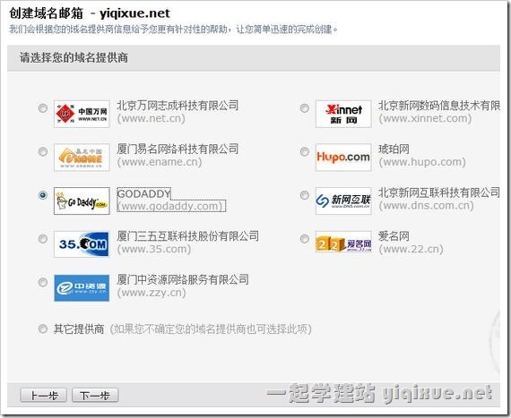 4.选择你的域名提供商(yiqixue.net是在GoDaddy注册的,所以倡萌选择GoDaddy),如果你不确定,就选其他