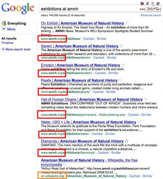 另外,在Google香港搜索“exhibitions at amnh”的结果页面还依然符合Google以前的理念,可能这一变化还没部署到全球。