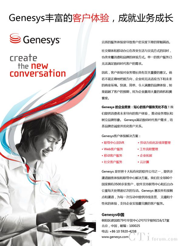 Genesys大中华区业务发展总监黄金鹏将出席2014中国呼叫中心及企业通信大会,并发表名为《Genesys释放客户体验,创造价值》的主题演讲。