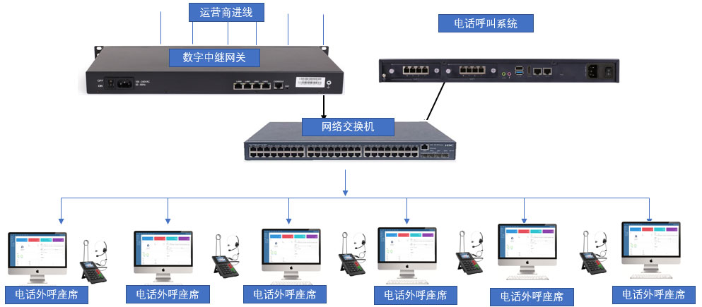 电话外呼软件+话务耳麦组网图示