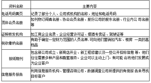 指通过查询与目标客户相关的资料来寻找目标客户,可供查询的资料如表3-2所示。