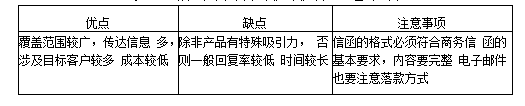客户介绍公司产品或者服务,以及订购和联系的方式,以便寻找客户。该方法优缺点和注意事项如表3-5所示。