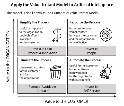 如果它对客户有价值,但对组织有刺激性,那么请考虑如何使该过程自动化。你怎样才能给客户他们想要的,但又避免成本和人为的互动,从而满足客户的需求?