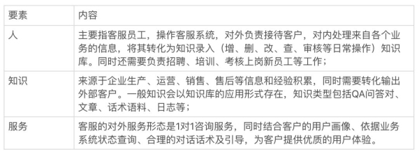 知识:这里主要指应用在AI机器人上的知识,产品化过程中需要考虑知识结构形式差异、获取方式、知识输出确定性、使用频率等方面的要素;目标是尽可能满足客服对知识的灵活使用需求;