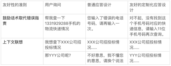 友好:对话的友好性在竹间产品团队看来,主要体现在不指责用户,鼓励用户给出准确的回复,同时能上下文联想直接回答用户的诉求而不必做多余追问,还能通过必要的引导和澄清,帮助用户获得其最终想要的答案。