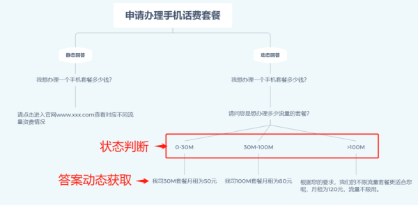 私有化部署定制化的智能客服场景在知识获取上,除了支持静态获取知识问答外,还需要提供从业务系统中获取动态知识进行问答的产品化能力;如下图一个业务点流程:
