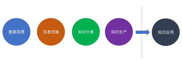 第一个提供的产品化工具应用在知识生产和管理过程,目的是提高知识转化效率。一般在项目启动时,会通过在线日志、业务文档文件、已有客服知识点来梳理统筹项目整体知识库框架;针对大多数情况,即线上对话日志和已有客服知识点,知识生产的流程基本可以分为下面几个步骤: