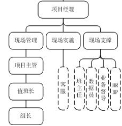 1)项目实施团队组织结构。项目实施团队组织的设置完全是为了有效地对项目目标和客户的需要做出反应。为完成项目运营目标所需的所有资源完全分配给专门为这个项目服务的团队,项目经理对项目团队拥有项目组织结构完全的项目权力和行政权力,可以调动整个组织内部或外部资源。