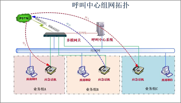 4)当网络出现故障时候,通过在呼叫中心软件的队列中做呼叫转移到应急话机上同样能实现报修电话的正常接听,只是没有来电弹屏而已;